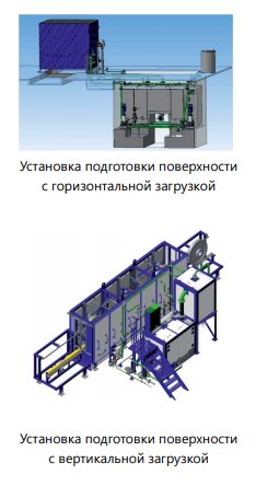 • изделие транспортируется в установку вертикально. Установка такого типа была реализована для ОАО «ЕВРАЗ НТМК» (г. Нижний Тагил, Россия). Установки изготавливаются проходного и непроходного типов.