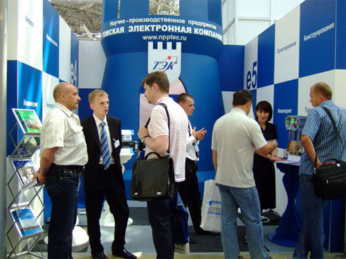 20-метровый стенд "Томской электронной компании" размещался в павильоне "Форум", и многие гости стенда отмечали его оригинальный дизайн, выполненный в шахматной тематике.