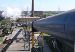 В ходе изучения современных мировых достижений специалистами НПП "Томская электронная компания" было предложено рациональное техническое проектное решение об использовании конвейерной системы SICON (ContiTech Scandinavia AB, Швеция) в проекте реконструкции конвертерного цеха "Нижнетагильского металлургического комбината". Для возможности запуска такой системы требовался особый подход к проектированию конструкции галереи. При реализации самым оптимальным решением принята конструкция галереи, в которой несущим элементом являлась сварная трубчатая конструкция диаметром 2,4 м и общей протяженностью 400 м, с пролетами до 24 м, с возможностью опирания галереи на существующие конструкции цеха (рисунки 1, 2, 3). Все несущие элементы конвейерной системы SICON смонтированы непосредственно на внутренних стенах трубчатой галереи.