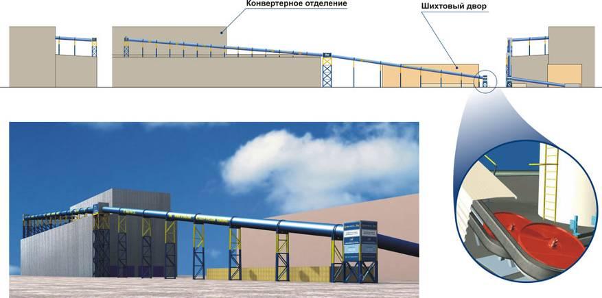 Таким образом, применение конвейерной системы SICON позволило решить проблему размещения тракта транспортировки шихты в стесненных условиях действующего производства, обеспечить подачу материала по сложной наклонной трассе общей протяженностью 480 м и длиной конвейерной ленты 960 м, с тремя поворотами на 90º без перегрузочных станций, что существенно уменьшило пылевыделение (рисунок 5).