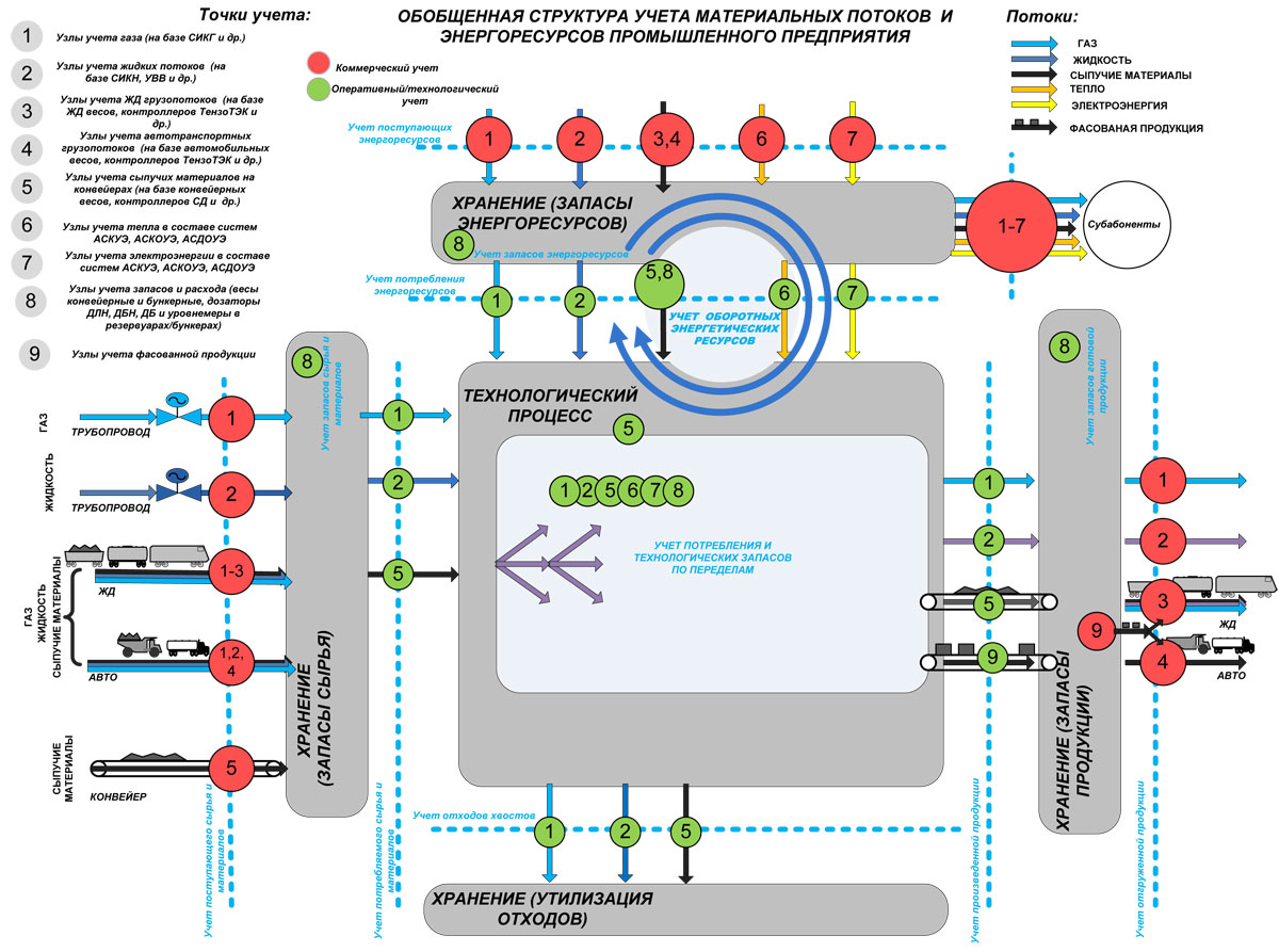 Полнофункциональный учёт для предприятий с развитой структурой автомобильного и железнодорожного оборота обеспечивает интеграция этих систем с автоматизированными системами диспетчеризации и учета производства (АСДУ).