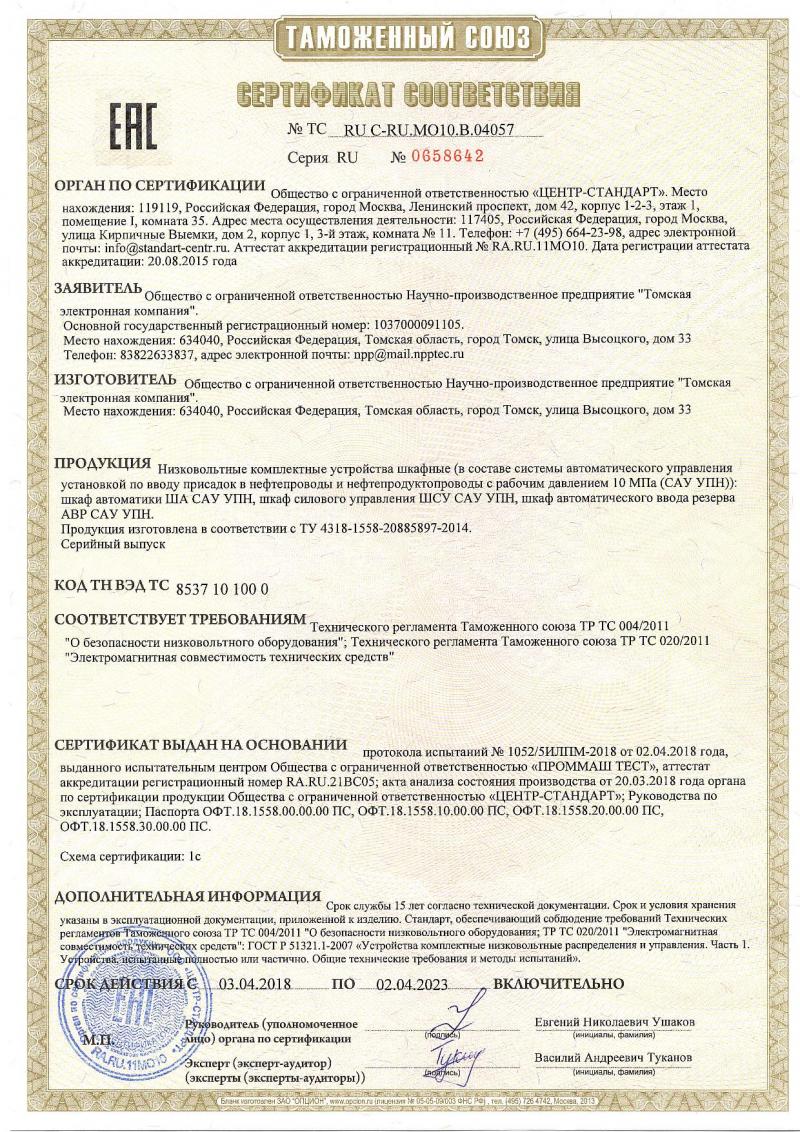 Сертификат соответствия ТР ТС 004/2010, ТР ТС 020/2011