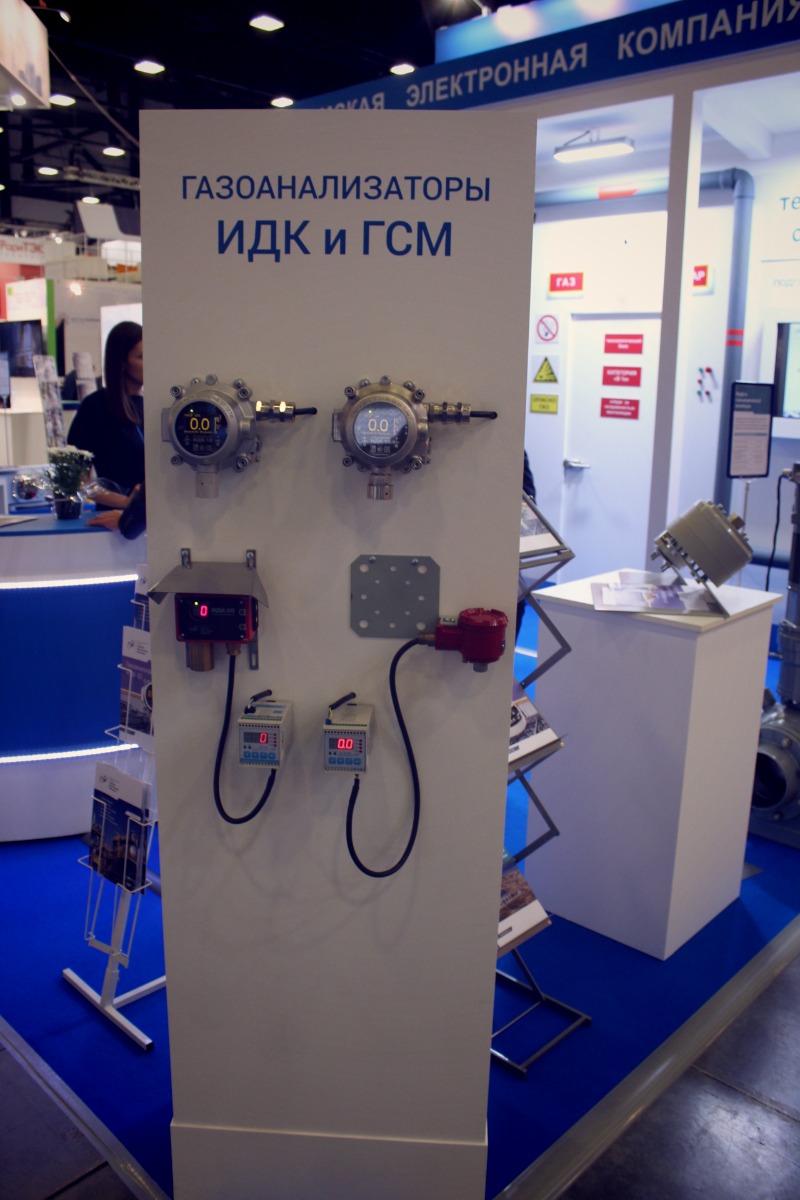 С другой стороны стенда можно было увидеть отдельный демонстрационный стенд, посвященный газоанализаторам ИДК и ГСМ. На нём были представлены хорошо зарекомендовавшие себя среди Заказчиков НПП «ТЭК» ГСМ-05 и ИДК-09. Но главной звездой этого стенда была еще одна новинка - газоанализатор ИДК-10, представленный как в алюминиевом корпусе, так и в корпусе из нержавеющей стали. Оснащенные оптическим инфракрасным или термокаталитическим сенсором, ИДК-10 вызвали большой интерес у посетителей Газового Форума.