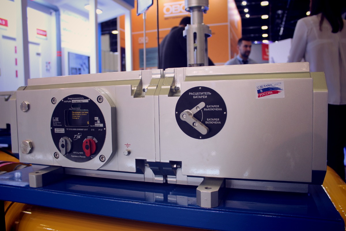 Новинки 2017 года от «Томской электронной компании» во всей красе были представлены на стенде. Сразу на входе посетителей встречала инсталляция, являющая собой макет газопровода с реальным оборудованием на нем. На двух клапанах Партнёров НПП «ТЭК» ЗАО «ДС КОНТРОЛЗ» расположились электропривода РэмТЭК: в малогабаритном исполнении и 81-ой модификации, с боковым расположением блока. Но главной особенностью инсталляции было то, что оба электропривода РэмТЭК были подключены к главной новинке этого года – энергонакопителям НАРЫМ. Для демонстрации возможностей НАРЫМа инсталляцию специально отключали от электричества. Каждый посетитель видел, что несмотря на отсутствие электроэнергии, электроприводы РэмТЭК продолжили свою работу как ни в чем не бывало, получая энергию от энергонакопителей НАРЫМ. Также в инсталляции была показана возможность работы энергонакопителя НАРЫМ от альтернативных источников энергии, например, от солнечных батарей.