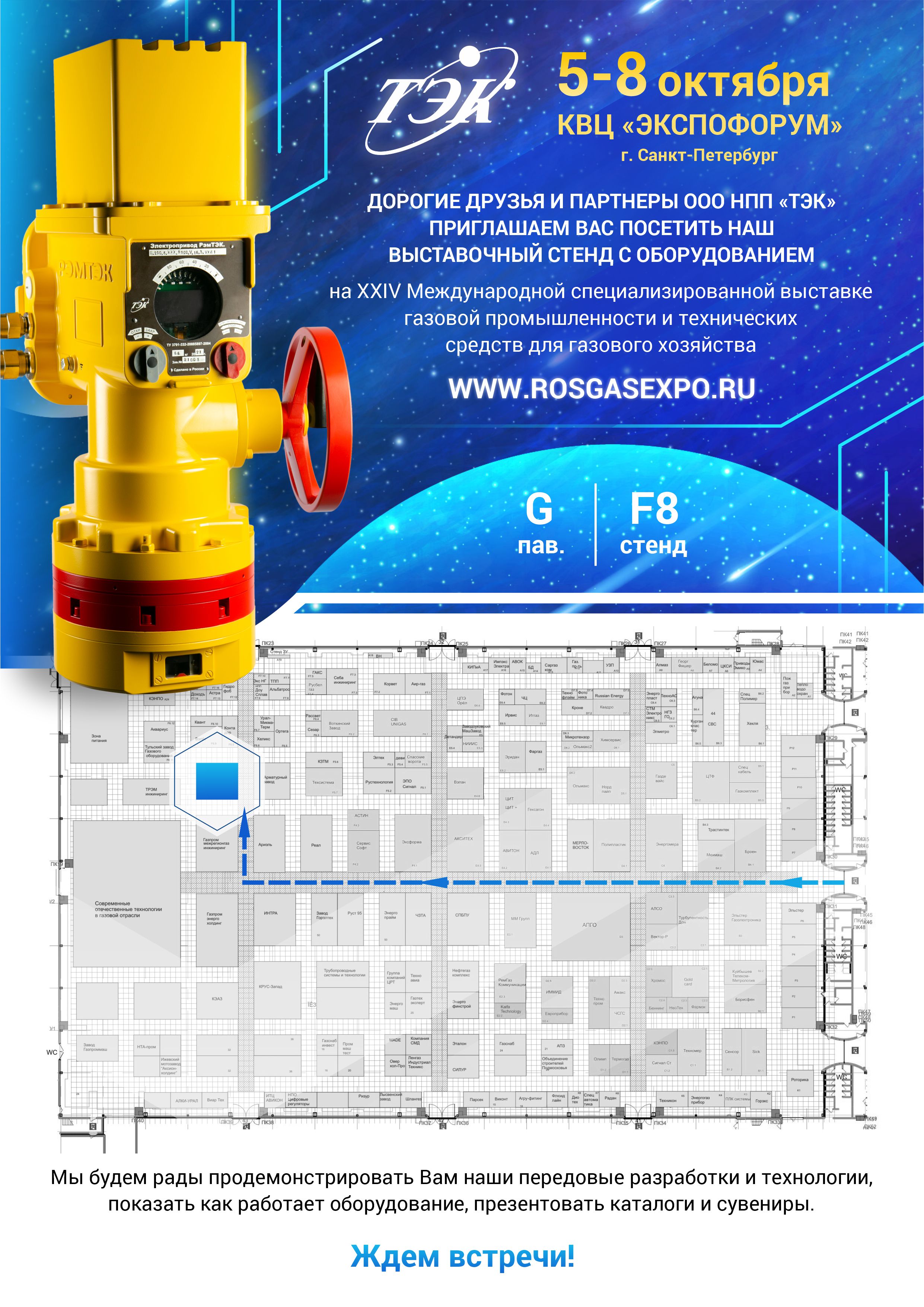 г. Санкт-Петербург, КВЦ «Экспофорум», павильон G, выставочный стенд ООО НПП «ТЭК» № F8.