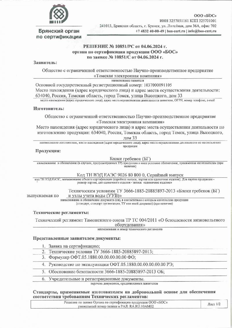 Сертификаты и разрешения (если Вы не нашли нужный сертификат рекоммендуем https://npptec.ru/documents/)