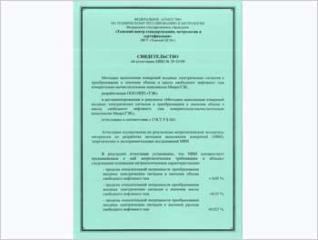 Получено свидетельство об аттестации МВИ № 29-35/09 "Методика выполнения измерений входных электрических сигналов и преобразования в значения объема и массы свободного нефтяного газа измерительно-вычислительным комплексом МикроТЭК", выданное ФГУ "Томский ЦСМ".