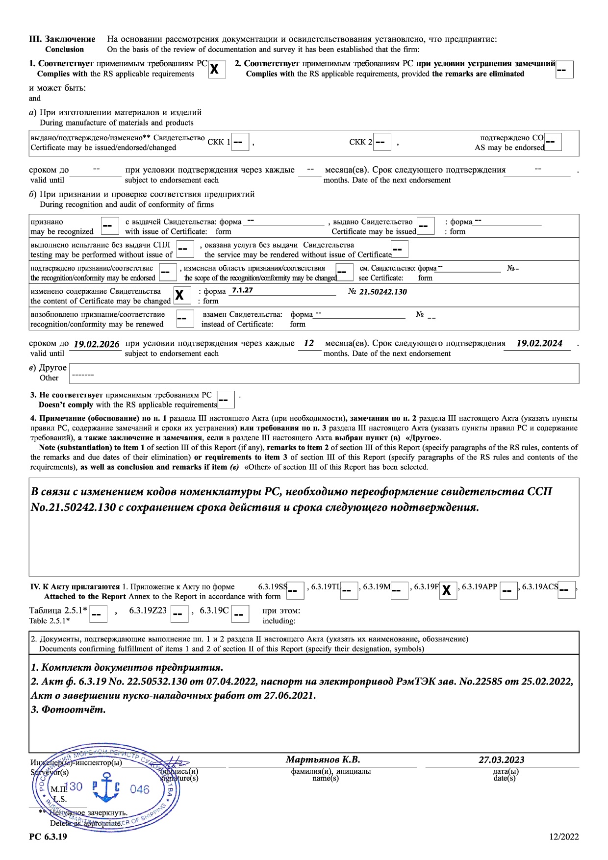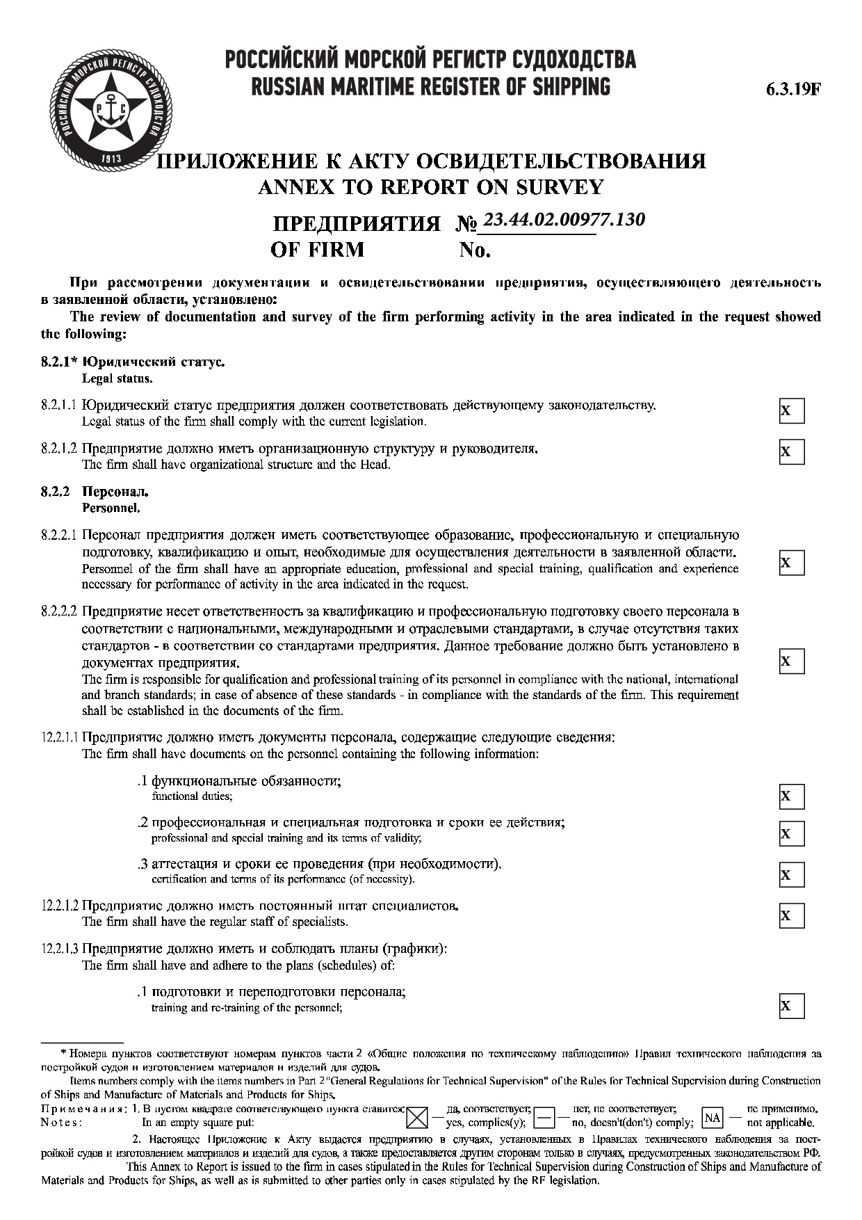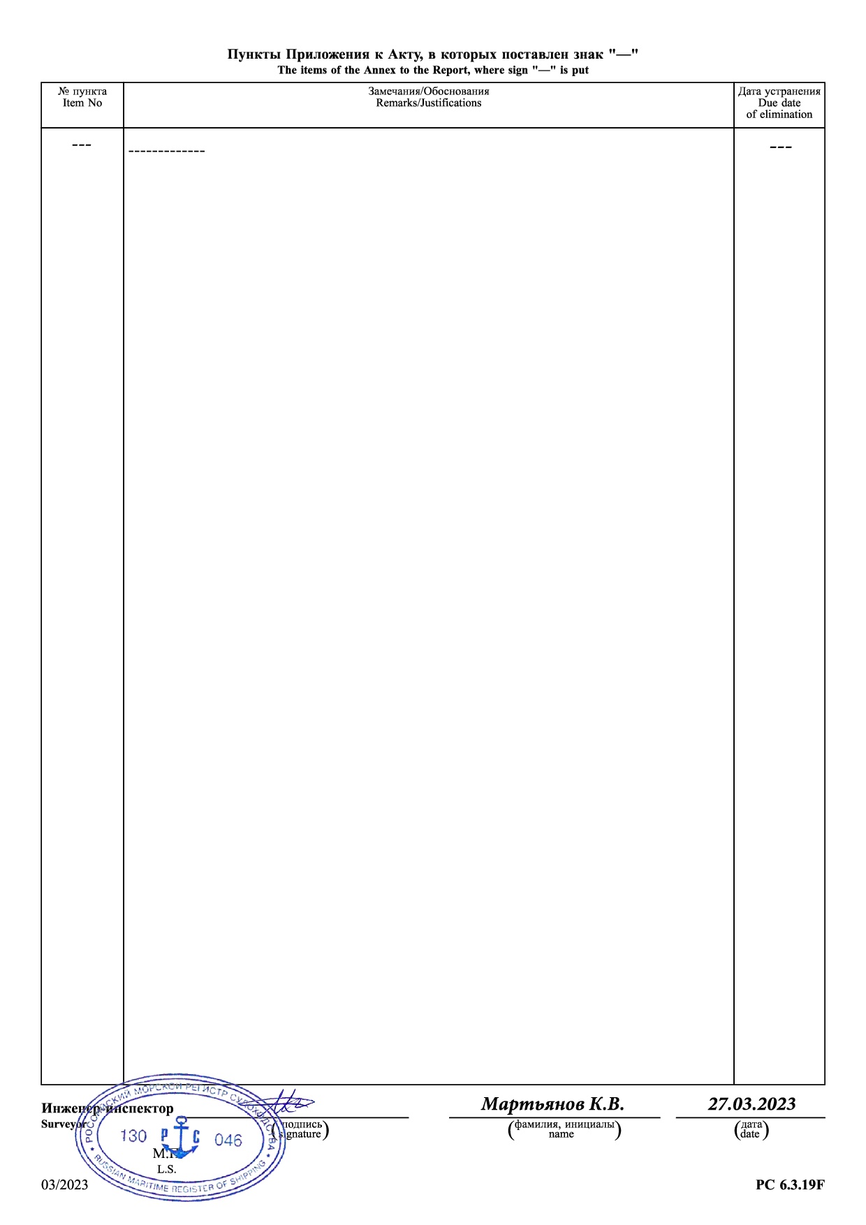 Акт освидетельствования РМРС